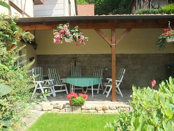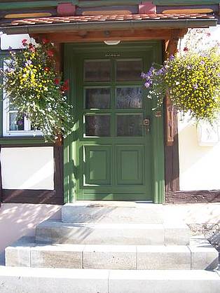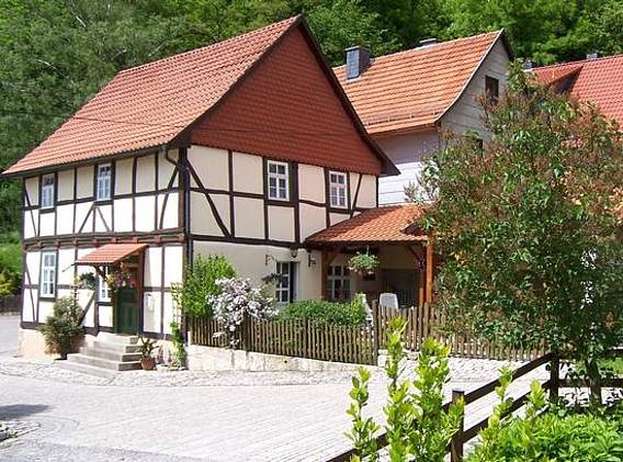 Unser Haus liegt am oberen Stadtrand von Treffurt, direkt an der Normannsteinquelle am Fuße der Burg Normannstein.