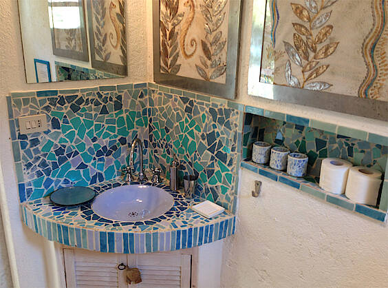 Das "Windhaus" liegt am Ortsrand mitten im Grünen, umgeben von einem Terrassengarten und einem atemberaubenden Blick auf den Golf von Sant Andrea. Das Apartment ist über einen kurzen Fußweg (ca. 300 Meter) erreichbar, welcher Ruhe und Zurückgezogenheit des Hauses garantiert.