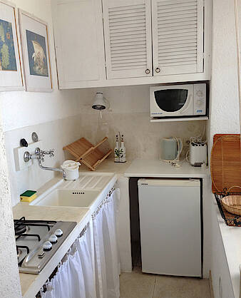 Das kleine Windhaus hat einen separaten Eingang unterhalb des großen Windhauses und besteht aus einem Schlaf-Wohnzimmer, einer Küche mit Gasherd, Mikrowelle, Geschirr, Besteck etc.. und einem Bad mit Dusche. Das kleine Windhaus hat einen eigenen Bereich im Garten mit Meerblick.