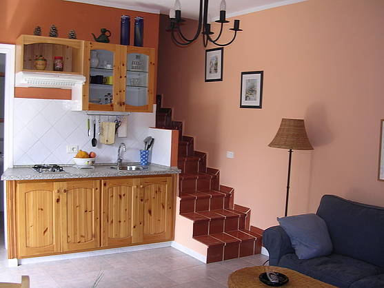 The Rural house, has a very modern feel thanks to its two storey structure. On the first floor there is a small dining room, the litchen and the bathrooom. The upper floor is has the bedroom with two single beds and teh extra bed (useable for children up to 7 years of age and free of charge) and the entrance to the terrace with great views, ideal for breakfasts and relaxing afternoons.