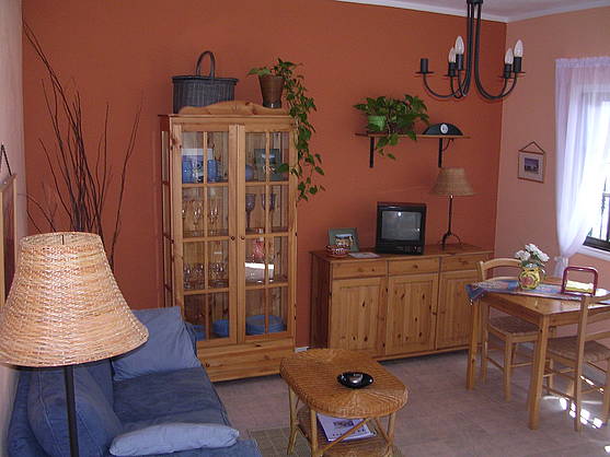 * Lounge/diner, kitchen, bathroom, terrace, duvets, towels, fridge, microwave, heating, toaster, TV and communal washing machine.