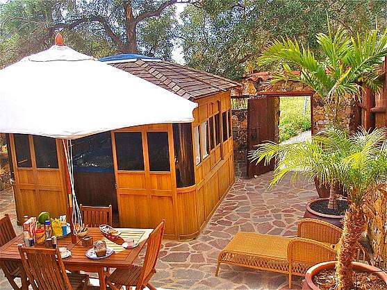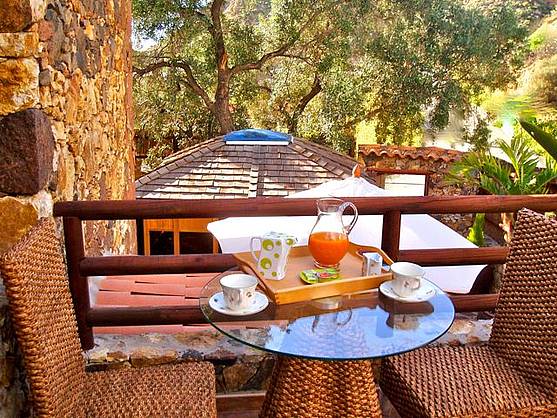 * 1 Bedroom with double bed, bathroom with toilet and sink in the bedroom, TV and cot available. * Jacuzzi with ozone generator and wooden gazebo. * Fully equipped kitchen with dishwasher, washing machine, hair dryer and microwave-oven. * 1 complete bathroom with shower. * Hot water from solar energy. * Flat screen TV-Satellite, HiFi-CD, music, air conditioning and heating and wood stove in the living room. * Safe. * BBQ and terrace furniture. * Small computer with internet connection.