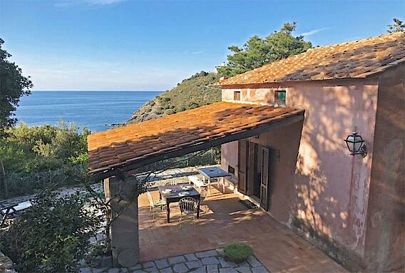 Das charakteristische Elbaner Landhaus liegt mitten im Grünen, umgeben von der Macchia Mediterranea, der typischen Mittelmeervegetation, und einem Blick auf die Bucht von Patresi und den antiken Leuchtturm-il Faro.