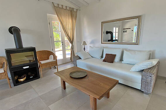 liegt im oberen Bereich der Villa. Durch zwei Glastüren gelangt man in den Wohn- und Schlafraum mit Schlafcouch und Badezimmer. Von dem gelangt man in eine kleine gut ausgestattete Küche mit traumhaftem Meerblick. Vom Wohnraum gelangt man durch eine grosse Schiebetür in das Schlafzimmer mit Doppelbett.