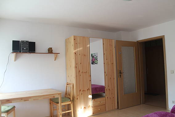 Hübsche preiswerte Ferienwohnung Das Appartement liegt zentral unweit der Innenstadt. Das helle Appartement ist 40 qm groß und ideal für zwei Gäste. Eine neue Küche mit Eßecke, Dusche, Flur und Wohn-Schlafbereich warten auf Sie.