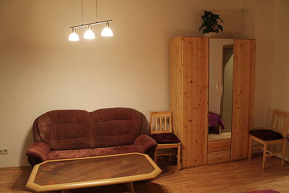 Hübsche preiswerte Ferienwohnung Das Appartement liegt zentral unweit der Innenstadt. Das helle Appartement ist 60 qm groß und ideal für vier Gäste. Eine neue Küche mit Eßecke, Bad, Flur und zwei Zimmer mit Wohn-Schlafbereich warten auf Sie.