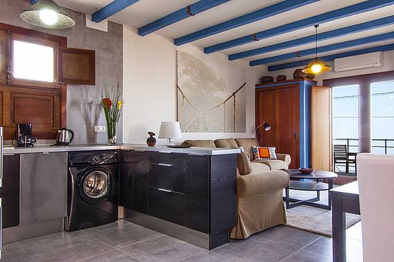 This rural house is composed of a beautiful living room with terrace and nice views over the swimming pool and the islands of la Gomera, El Hierro and La Palma.