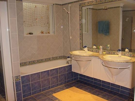 Die Küche ist komplett ausgestattet mit Geschirrspüler, Cerankochfeld, Backofen, Kaffeemaschine und allen wichtigen Utensilien, um auch den Genuß der Sinne zu aktivieren. Sie verfügt über eine offene Ess-Theke. Im Wohnzimmer sorgt ein schwarzes Ledersofa für Entspannung. Eines der Schlafzimmer bietet ein Doppelbett, das zweite Schlafzimmer bietet 2 Einzelbetten, die sich bei Bedarf auch zusammen stellen lassen, sowie ein Schlafsofa. Eine Waschmaschine mit einem Wäschetrockner runden das Angebot ab. Es gibt ein helles und modernes Badezimmer mit einer komfortablen Glas-Duschabtrennung und 2 Waschbecken. Im Obergeschoss befindet sich zusätzlich ein neues Gäste-WC.