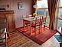 Das Ferienhaus ist in Holzbauweise errichtet, verfügt über Panoramafenster, holzverkleidete Innenwände/Dachschrägen. Der Fußboden ist aus geölten Dielen. Die Einrichtung ist komfortabel und gemütlich. Im großen Wohnraum steht ein Kaminofen (mit Holz/Holzbriketts zu beheizen).