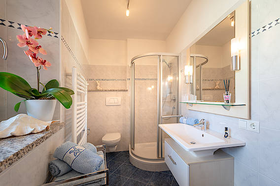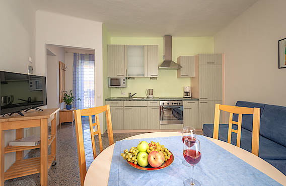 Our Holiday Flats consists of a completely furnished living kitchen with sofa and satellite TV-set and Wlan, one or two bedrooms, great bathroom and balcony. You will have at your disposal kitchenware, tea towels, bed linen as well as towels, a safe and a covered car park.