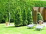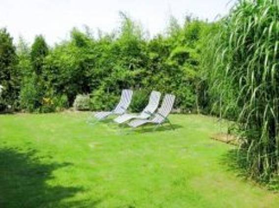 Eingerahmt von schönen Pflanzen und Hecken kann man von hier aus den unverbauten Blick auf Wiesen und Felder genießen und nach einem Saunagang im gepflegten Garten herrlich entspannen.