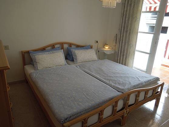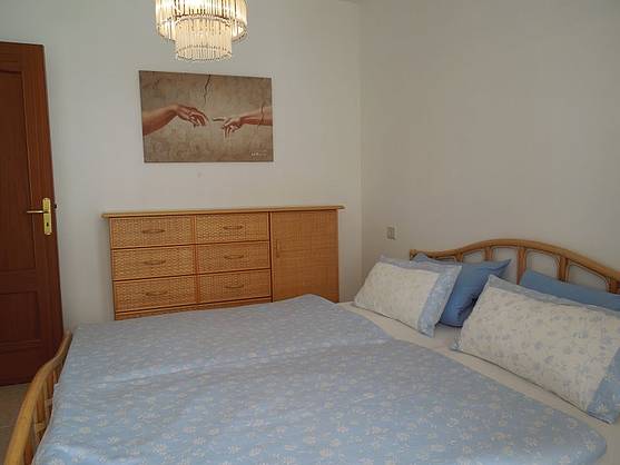 Das Schlafzimmer hat ein Doppelbett, eine dritte erwachsene Person kann auf dem Schlaf-Sofa schlafen oder alternativ 2 Kinder.