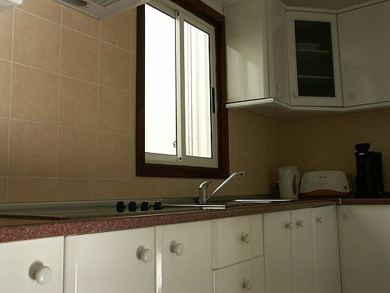 Auch die Plaza, wo fast immer irgendwelche Fiestas und Veranstaltungen statt finden, ist nur wenige Meter entfernt. Der Vorteil der zentralen Lage ist, das Supermärkte, Bäckereien, Metzgereien, Bars und Restaurants sowie auch die Post sich in unmittelbarer Nähe befinden und bequem zu Fuß erreicht werden können. Das Apartment hat einen Balkon und verfügt über ein Wohnzimmer mit Fernsehen mit Satelliten-Programmen. Die gut ausgestattete Küche bietet alles, was Sie zum täglichen Kochen brauchen. Die beiden Schlafzimmer bieten Platz für 4 Personen.