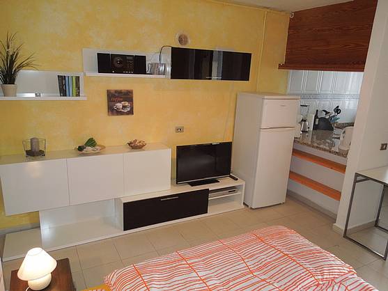 Das Studio besteht aus einem kombinierten Wohn- und Schlafraum, der ganz neu eingerichtet wurde. Die Küche verfügt über ein Cerankochfeld, einen Backofen, eine Mikrowelle, sowie Toaster, Wasserkocher und eine Kaffeemaschine. Alles, was man zum wohlfühlen braucht, ist vorhanden. Ein Flachbildfernseher und eine kleine Stereoanlage sorgen für Unterhaltung.