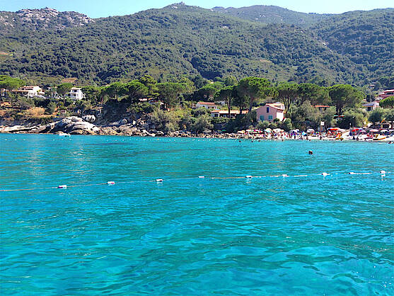 Once the village was a famous centre for the production of grapes and wine. White and red grapes of 'Aleatico' and 'Moscato' where exported to the mainland, from South Tuscany to Genoa. The ancient pier is still existing beside the sand beach now visited by lovers of nature and sun. At both sides of the beach touched by blue clear water, extend big granite rocks, famous for their round and smooth forms. A comfortable footpath connecting the rocks in the total respect of nature, led to delightful little bays where, even in high season, people can find a calm place to take a bath.