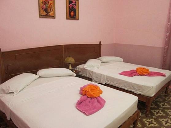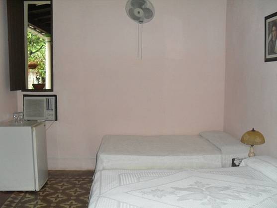 Habitación Privada 1 Dos camas dobles Aire acondicionado Refrigerador Ventilador Baño privado con agua caliente Precio: Temporada Alta 25.00 CUC Temporada Baja 20.00 CUC Habitacion 2 Dos camas dobles Refrigerador Aire acondicionado Ventilador Baño privado con agua caliente las 24 horas Facilidades • Sábanas, mantas y toallas • Teléfonos de tarjeta • DVD's • Sala de reunión • Biblioteca • Armarios seguros • Lavadora / Secadora • Seguridad las 24 horas • Secador de pelo • Aparcamiento • Aparcamiento de bicicletas y motos • Tabla de planchar • Almacenaje de equipaje • Recepción las 24 horas • Té y Café GRATIS todo el día • Consejos e información de viajes en la ciudad • Polvo de lavar • Servicio de correo de tarjeta postal Otros Servicios que ofrece • Servicios gastronómicos (desayunos, almuerzos y comidas) • Servicio de Lavandería • Servicio de cocteleria