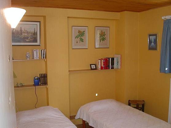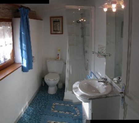 Sitting room with sofa-bed and chairs, TV (French), DVD & VideoShower room with vanity unit and WC.