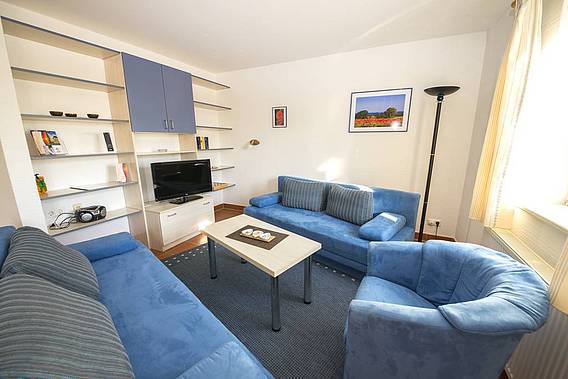 - großes, gemütliches Wohnzimmer mit LCD-TV (Diagonale 80 cm) und Zugang zur eigenen Terrasse