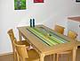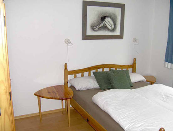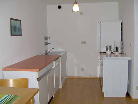 The flat is located in the first floor in a normal dwelling house and has a size of 50 square metre. It is divided in a living/eating room (with TV), a bedroom, a bathroom and a little hall. For sleeping there is a double bed, a single bed and a pull-out couch (cot on inquiry). The kitchen is complete furnished with a stove, a refrigerator, a dishwasher, a microwave, a cooffeemaker and a water cooker.
