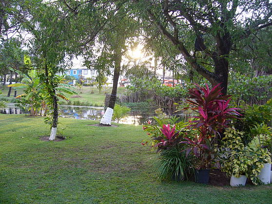 Sie sind in einer sicheren Anlage mit einem großen Garten voller Bäume, Blumen und Voegel untergebracht. Einem privilegiertem Ort einmalig am Strand in Salvador