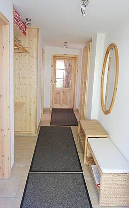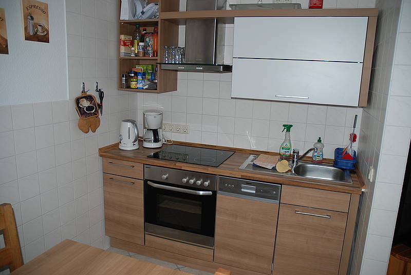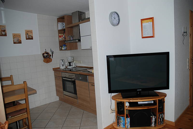 Über die eigene Terrasse gelangen Sie in den Flur, von dort geht es ins Kinderzimmer für 1 Person, ins Schlafzimmer der Eltern mit Doppelbett und großem Kleiderschrank und in das Wohnzimmer. Die komplett eingerichtete und sehr hochwertige Einbauküche mit Essbereich ist offen zum Wohnzimmer. Das Badezimmer ist vom Wohnzimmer aus erreichbar.