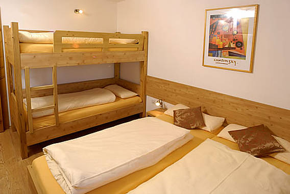 Apartment for 6 persons in a ski hut (possibility to use the sauna), on the top floor with balcony. There are 2 bedrooms with double beds, a LCD-TV with DVD Player of the latest generation and free Internet access. Fully equipped living room. Apart from the LCD-TV with DVD Player, a telephone and free Internet access, there is a comfortable sofa bed (180 x 200 cm). There are sliding doors to separate the living room from the dining room if you wish (which means you can have another bedroom that way). If you prefer to leave the open space as it is, you will have a spacious living room which is connected to the kitchen/diner. Spacious kitchen/diner with comfortable corner bench, Kachelofen (masonry stove), dishwasher, microwave, hot air stove, a large fridge with freezer compartment, coffee machine, kettle, egg cooker, mixer, hand blender, toaster etc.