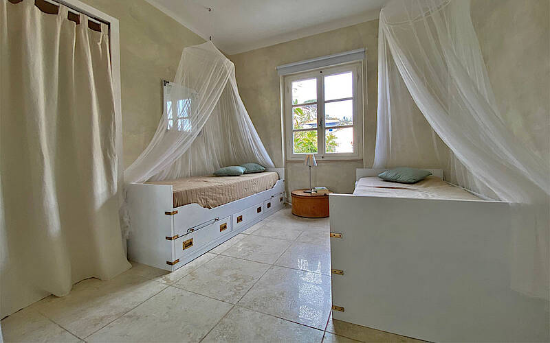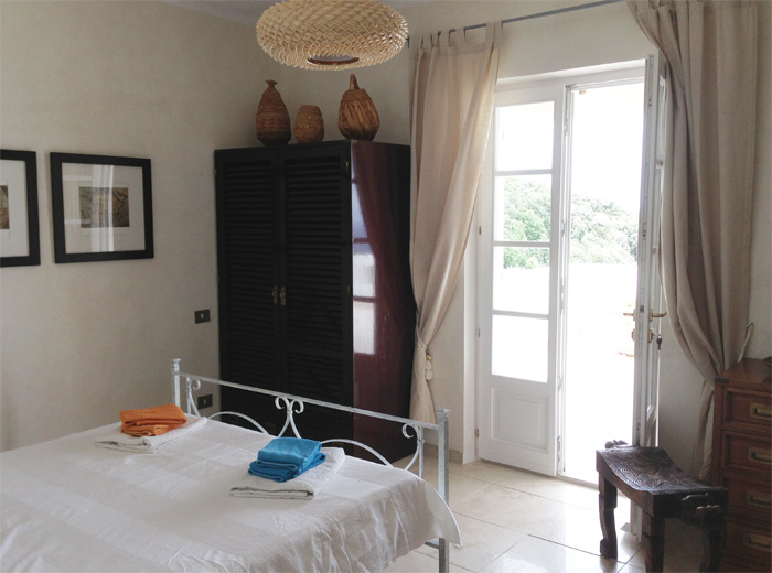 Die stilgerechte und wohnliche Einrichtung passt perfekt zu dem italenischen Charakter des Gebäudes. Die hochwertigen verarbeiteten Materialien setzten sich in den luxuriös ausgestateten Doppelschlafzimmer und einem im Bootsstile angelegtes zwei Bett Zimmer. Aus dem Doppelschlafzimmer geniesen sie einen herlichen Meerblick. Eine voll ausgestattete Küche inklusiver Spühlmaschine ist vorhanden. Vor dem Haus befindet sich ein schöner Zitrusgarten. Die Villa Meridiana hat einen terrassenförmig angelegten Garten, der sich über 4000 qm² in richtung Meer hinzieht.