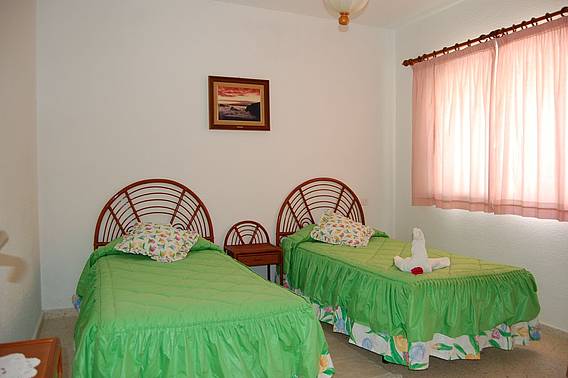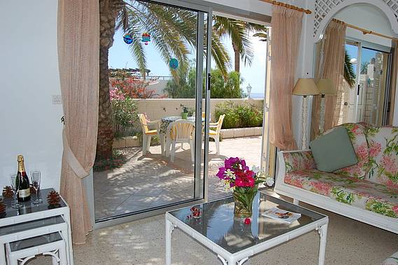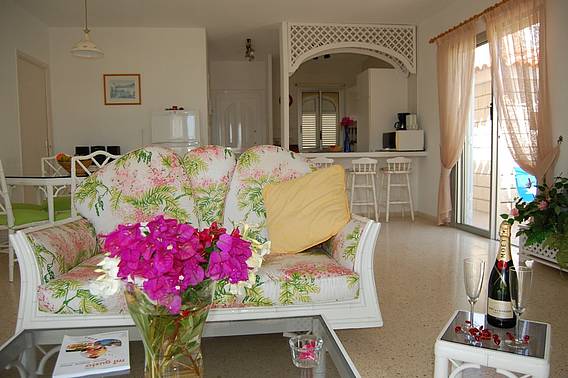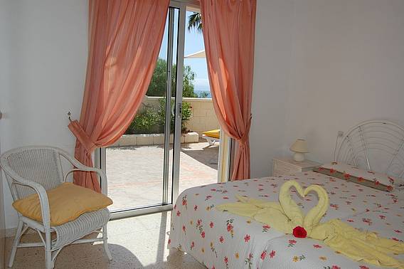 * Two bedrooms with two single beds in each. * Two bathrooms, one with bath and one with shower, lounge with fully-equiped american kitchen, TV Sat. Swimming pool 6x3 metres, BBQ, garden and sea view.
