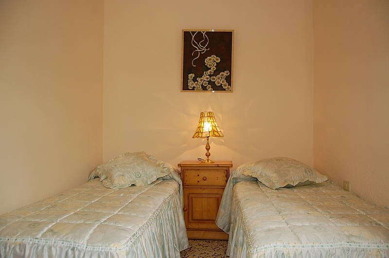 The upper level has two additional bedrooms with 2 individual beds each, a large bathroom with bathtub and a large terraced roof for sunbathing.
