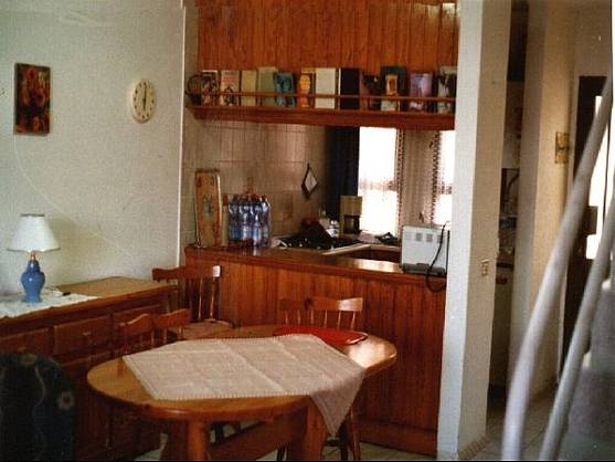 Erdgeschoss: Esstisch mit 6 Stühlen im Nahbereich der amerikanischen Küche ( Gas- und Stromanschluss ) großer Kühlschrank, Sessel und Couch in der Fernsehecke Fernseher mit Kabelanschluss, Dusche und WC. Auf dieser Ebene befindet sich die Terrasse mit Meerblick.