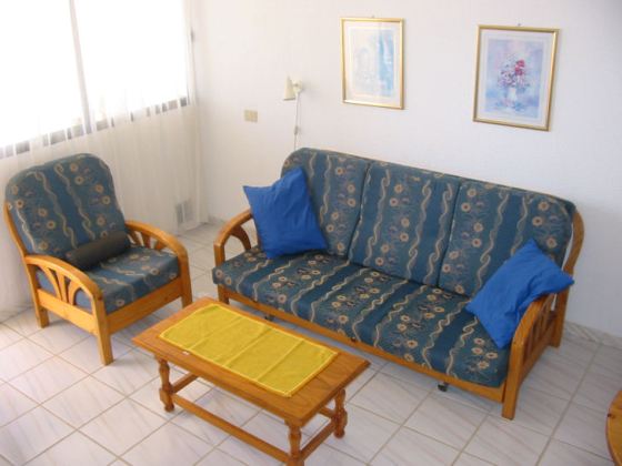 Holiday home Tenerife South, San Isidro 82 sqm on 2 levels, 4 persons, 2 bedrooms (with bedding) american kitchen, living-dining room with satellite TV, 2 showers with WC, terrace 32 sqm, balcony and parking. The house is located in a small resort.